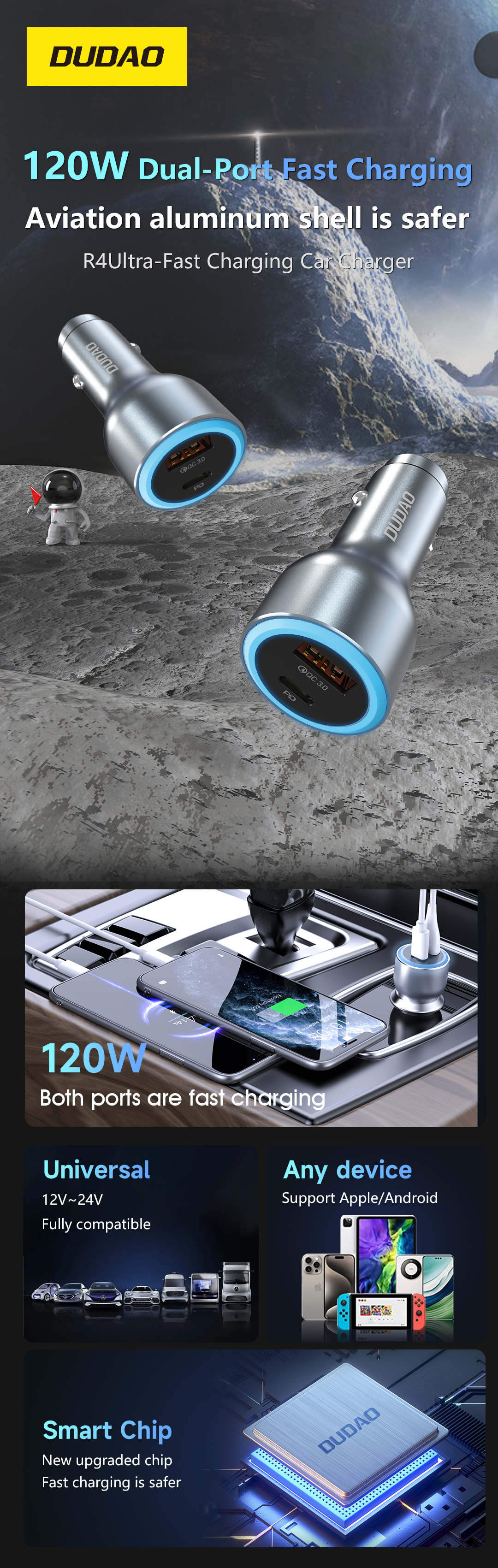 DUDAO 120W Supper Fast Charging Car Charger-R4ULTRA